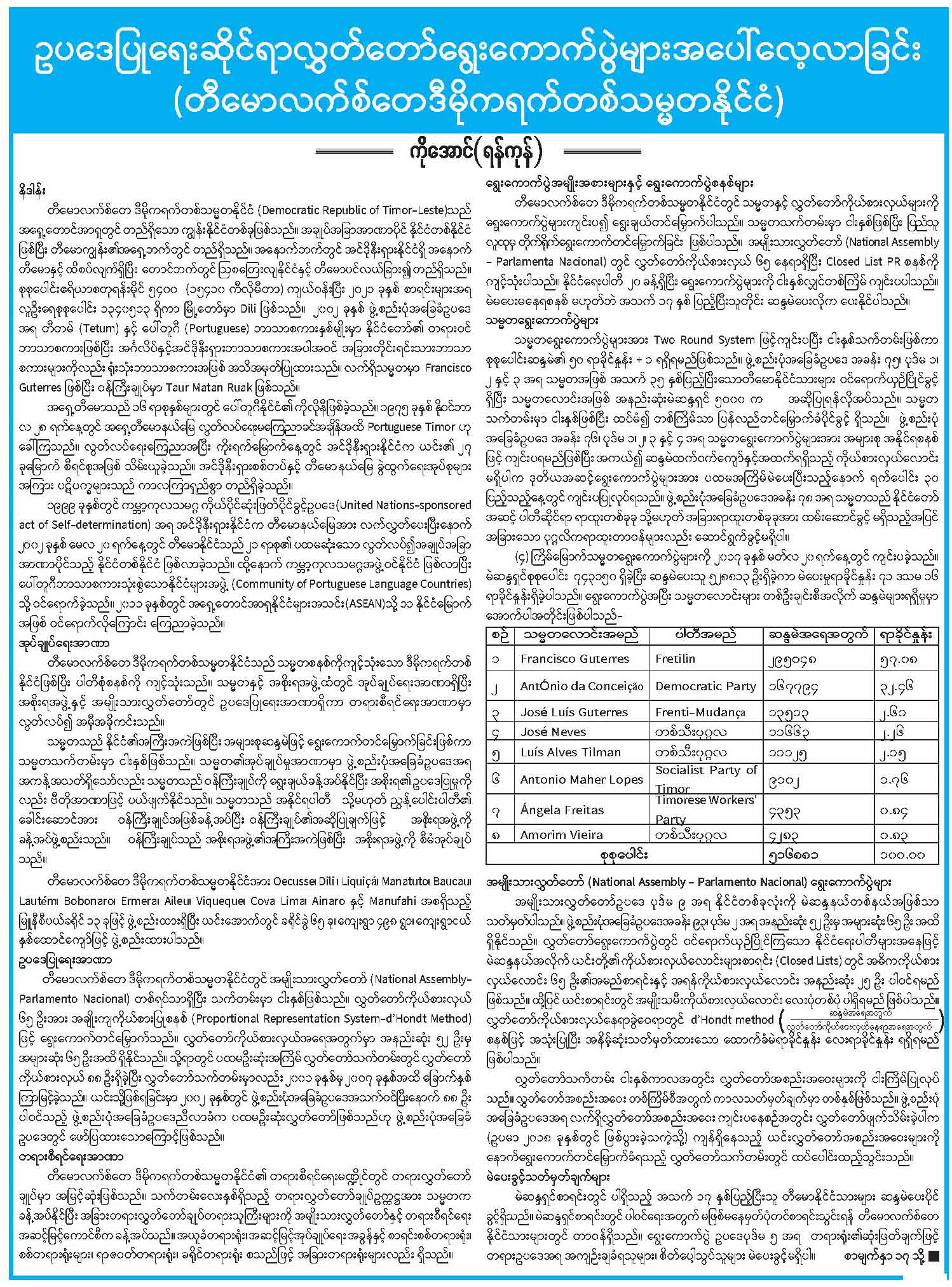 ဥပဒေပြုရေးဆိုင်ရာ လွှတ်တော်ရွေးကောက်ပွဲများအပေါ် လေ့လာခြင်း (တီမောလက်စ်တေဒီမိုကရက်တစ်သမ္မတနိုင်ငံ)
