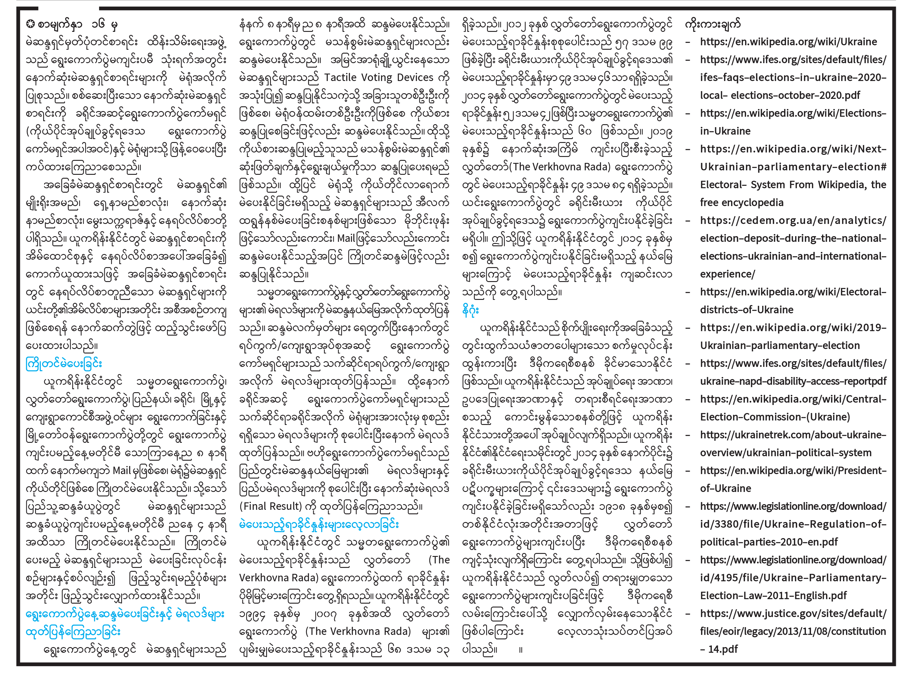 ဥပဒေပြုရေးဆိုင်ရာလွှတ်တော်ရွေးကောက်ပွဲများအပေါ်လေ့လာခြင်း(ယူကရိန်းနိုင်ငံ)
