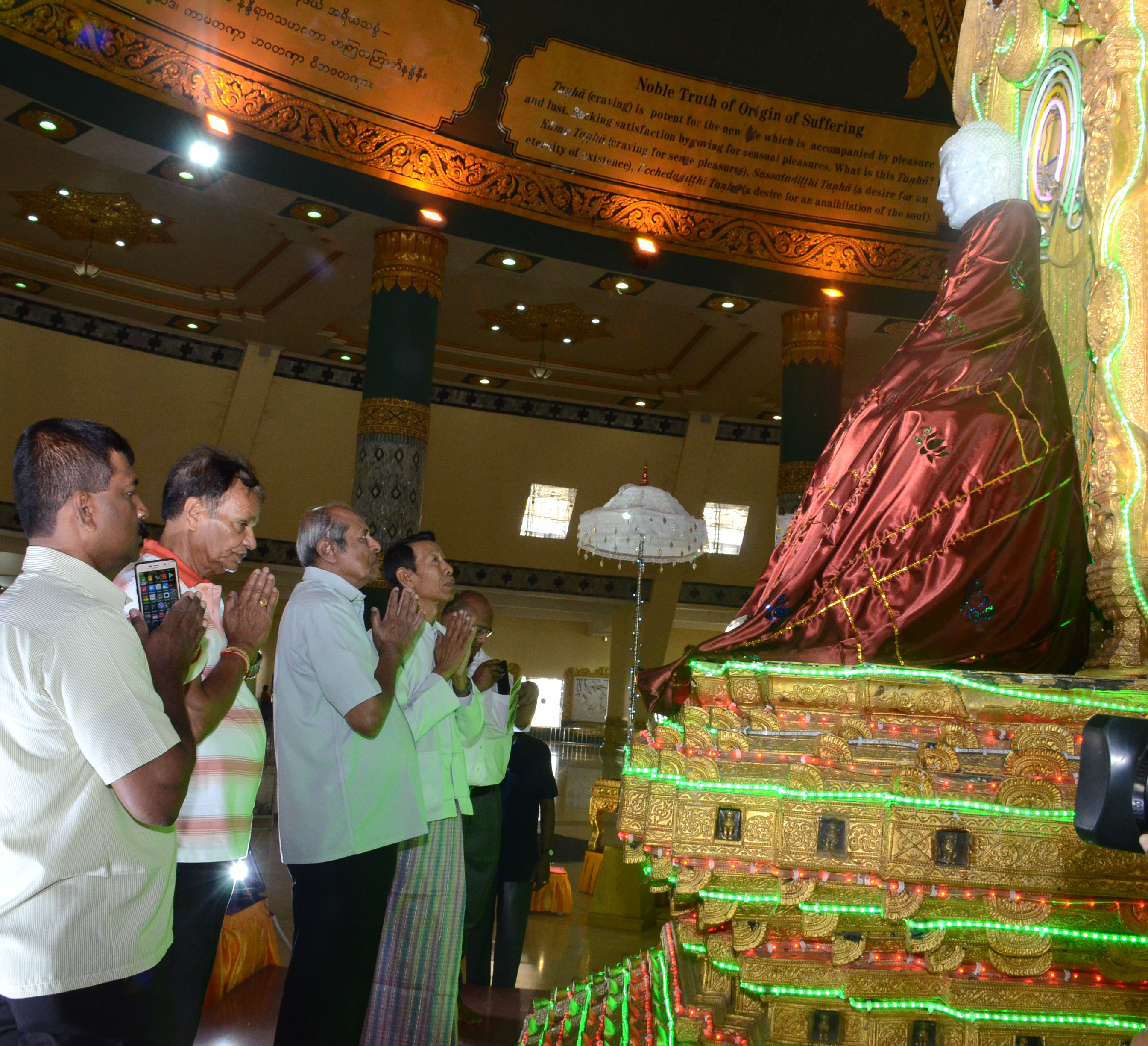 ထို့နောက် သီရိလင်္ကာနိုင်ငံခြားရေးဝန်ကြီးသည် ဥပ္ပါတသန္တိစေတီတော်မြတ်ကြီး လိုဏ်တော်အတွင်းရှိ ကျောက်စိမ်းရုပ်ပွားတော်များအား ဖူးမြော်ကြည် ညိုပြီး သစ်သီး၊ ပန်း၊ ရေချမ်းတို့ ဆက်ကပ်လှူဒါန်းသည်။