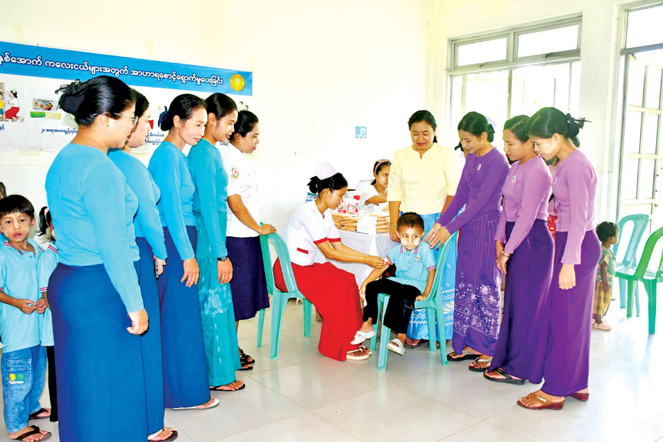 ထိုသို့ ဆောင်ရွက်ရာတွင် မြို့နယ်ပြည်သူ့ကျန်းမာရေးဦးစီးဌာနမှူး ဒေါက်တာ ဝါဝါညွန့်ရွှေ ဦးဆောင်၍ ကျန်းမာရေးဝန်ထမ်းများ၊ မြို့နယ် မိခင်နှင့်ကလေး စောင့်ရှောက်ရေးအသင်း၊ အမျိုးသမီးရေးရာ အဖွဲ့နှင့် မြို့နယ်ကြက်ခြေနီ သူနာပြုတပ်ဖွဲ့ဝင်များ ပူးပေါင်း၍ အသက် ငါးနှစ်အောက် ကလေးများ၏ အာဟာရအခြေအနေများ ဆန်းစစ်၍ လိုအပ်သော စောင့်ရှောက်မှု ပေးခြင်းများကို ဆောင်ရွက်ခဲ့ကြောင်း သိရသည်။