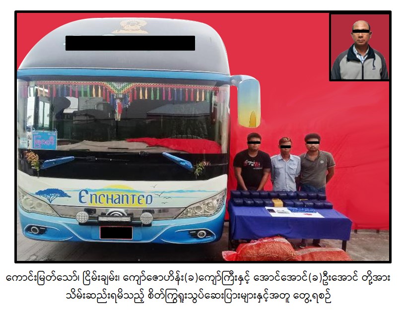 မူးယစ်ဆေးဝါးတားဆီးနှိမ်နင်းရေးရဲ တပ်ဖွဲ့ဝင်များပါဝင်သော ပူးပေါင်းအဖွဲ့သည် ဩဂုတ် ၇ ရက် မွန်းလွဲ ၃ နာရီတွင် ကွန်ဟိန်းမြို့နယ်၊ တာကော်ကျေးရွာရှိ ပူးပေါင်းစစ်ဆေးရေးဂိတ်တွင် ရှောက်ကွာ မောင်းနှင်ပြီး ရှောက်ဝိန်လိုက်ပါလာသည့် CROWN အမျိုးအစားမော်တော်ယာဉ်ကို ရပ်တန့်စစ်ဆေးရှာဖွေရာ ဘိန်းဖြူ ဘလောက်တုံး ၁၇ တုံးနှင့် အလေးချိန် ၅ ဒသမ ၉၅ ကီလိုကို လည်းကောင်း၊ အလားတူ ဩဂုတ် ၆ ရက် ည ၉ မိနစ် ၃၀ တွင် ပူးပေါင်းအဖွဲ့သည် ဝေါမြို့နယ်၊ ညောင်ခါးရှည်ကျေးရွာရှိ X-Ray စက်စစ်ဆေးရေးဂိတ်တွင် ကောင်းမြတ်သော် မောင်းနှင်ပြီး ကျော်ဇောဟိန်း(ခ) ကျော်ကြီးနှင့် ငြိမ်းချမ်းတို့လိုက်ပါလာသည့် EXPRESS အမျိုးအစား ခရီးသည်တင်မော်တော်ယာဉ်ကို ရပ်တန့်စစ်ဆေးရှာဖွေရာ စိတ်ကြွရူးသွပ်ဆေးပြား ၂၉၂,၅၀၀ ကိုလည်းကောင်း ကွင်းဆက်အရ ည ၁၁ နာရီတွင် တောင်ကြီးမြို့နယ်၊ အေးသာယာမြို့၊ အမှတ်(၃) ရပ်ကွက်၊ ပိတောက်လမ်းရှိ မော်တော်ယာဉ်ဂိတ်တွင် စိတ်ကြွရူးသွပ်ဆေးပြားများ သယ်ဆောင် ရာ၌ ပူးပေါင်းပါဝင်သူ အောင်အောင်(ခ) ဦးအောင်အား ဆက်လက်ဖမ်းဆီးရမိခဲ့သဖြင့် ၎င်းတို့အား မူးယစ် ဆေးဝါးနှင့်စိတ်ကိုပြောင်းလဲစေသော ဆေးဝါးများဆိုင်ရာဥပဒေအရ အရေးယူထားကြောင်း သိရသည်။