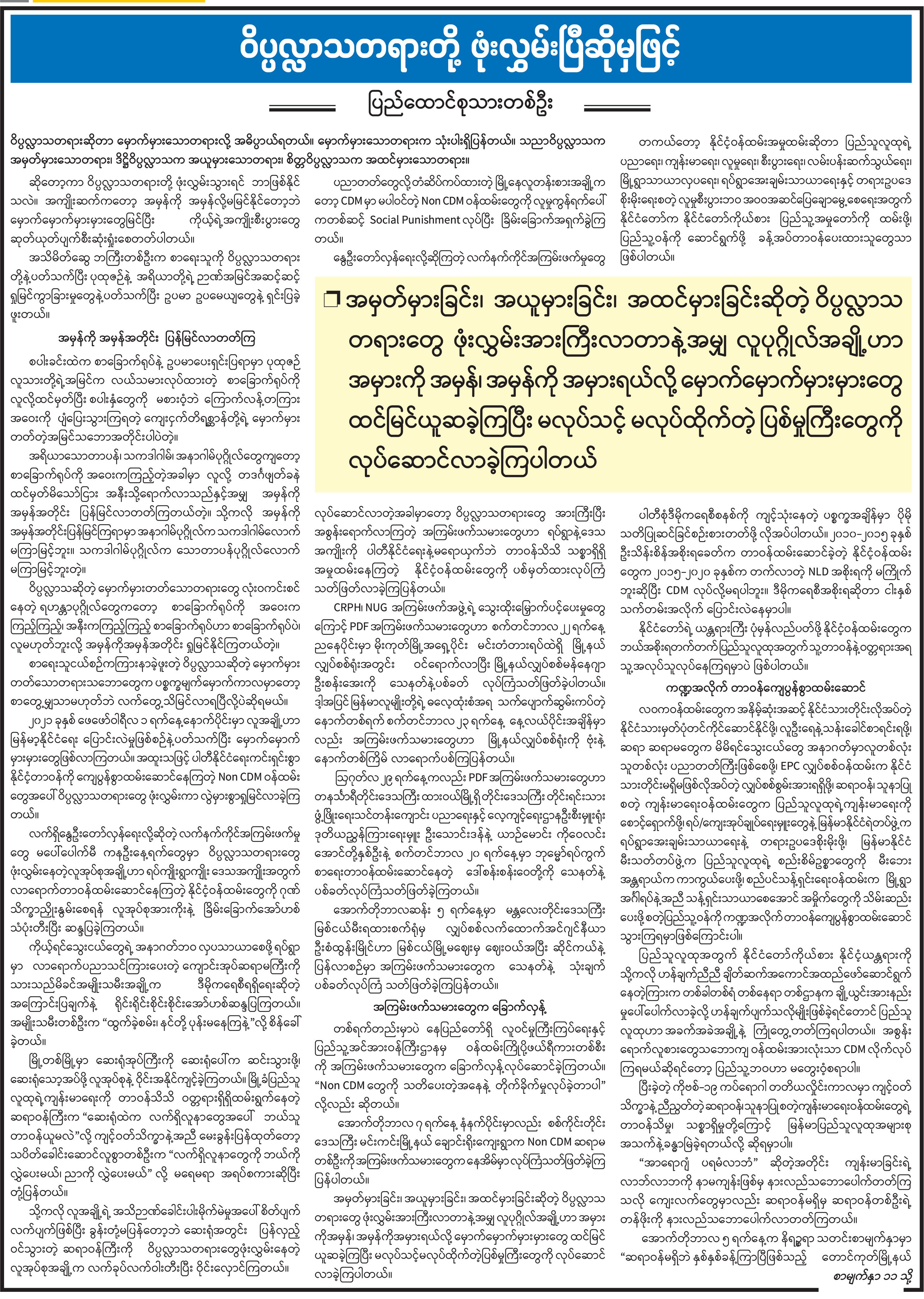 အယ်ဒီတာထံ ပေးစာ