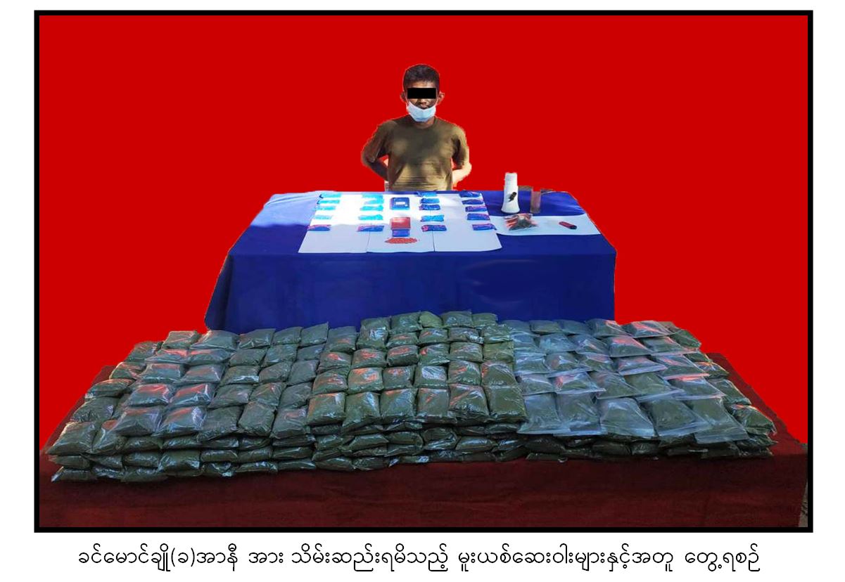 မူးယစ်ဆေးဝါး တားဆီးနှိမ်နင်းရေးရဲတပ်ဖွဲ့မှ တပ်ဖွဲ့ဝင်များသည် ဒီဇင်ဘာ ၅ ရက် ညနေ ၅ နာရီခွဲတွင် ဝိုင်းမော်မြို့နယ်၊ ဝါးရှောင်ကျေးရွာအုပ်စု၊ ဂေါ်ဆက်ယန်ကျေးရွာအနီးတွင် မသင်္ကာဖွယ်တွေ့ရှိသူ ငွါးလေး အား စစ်ဆေးရှာဖွေရာ ဘိန်းစိမ်း ၇ ဒသမ ၅ ကီလိုကိုလည်းကောင်း၊ ထို့အတူ ယင်းနေ့ ညနေ ၃ နာရီတွင် မူးယစ်ဆေးဝါး တားဆီးနှိမ်နင်းရေးရဲတပ်ဖွဲ့မှ တပ်ဖွဲ့ဝင်များသည် မြိတ်မြို့နယ်၊ ပသောင်းကျေးရွာအုပ်စု၊ ပသောင်းကျေးရွာနေ ခင်မောင်ချို(ခ)အာနီ၏ နေအိမ်သို့ ဝင်ရောက်ရှာဖွေရာ စိတ်ကြွရူးသွပ်ဆေးပြား ၄,၁၇၉ ၊ အိုက်စ် သုည ဒသမ ၀၀၅ ကီလို၊ ဆေးခြောက် သုည ဒသမ ၀၁၅ ကီလိုနှင့် ဘိန်းစာမှုန့် ၄၀ ဒသမ ၉ ကီလိုတို့ကို သိမ်းဆည်းရမိခဲ့သဖြင့် ယင်းတို့အား မူးယစ်ဆေးဝါးနှင့် စိတ်ကိုပြောင်းလဲစေသော ဆေးဝါးများဆိုင်ရာဥပဒေအရ အရေးယူထားကြောင်း သိရသည်။