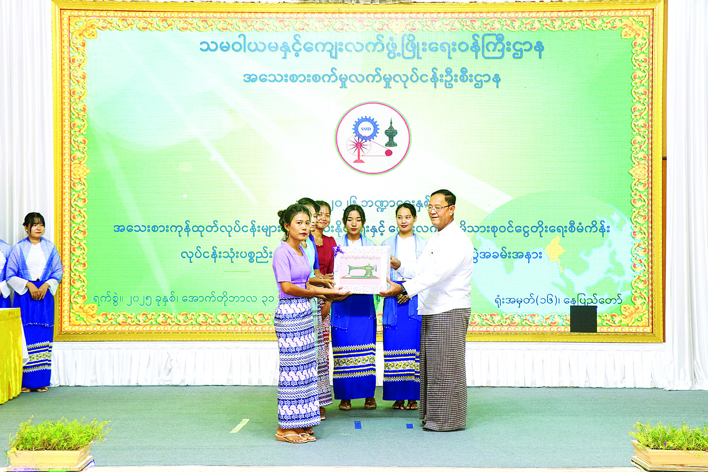သမဝါယမနှင့်ကျေးလက်ဖွံ့ဖြိုး ရေးဝန်ကြီးဌာန၊ အသေးစားစက်မှု လက်မှုလုပ်ငန်းဦးစီးဌာနက အကောင်အထည်ဖော် ဆောင်ရွက်လျက်ရှိသည့် “အသေးစားကုန်ထုတ်လုပ်ငန်းများ ဖန်တီးပေးနိုင်ရေးနှင့် ကျေးလက်နေမိသားစုဝင်ငွေတိုးရေးစီမံကိန်း” ၏ ၂၀၂၅-၂၀၂၆ ဘဏ္ဍာနှစ် နေပြည်တော် ကောင်စီနယ်မြေအတွင်း ဖွင့်လှစ်ခဲ့သည့် စက်ချုပ်သင်တန်း၊ မော်တော်ဆိုင်ကယ်ပြုပြင် ထိန်းသိမ်းနည်း ပညာသင်တန်း၊ စားသောက်ကုန်နှင့် လူသုံးကုန်ထုတ်လုပ်မှုသင်တန်းများ၏ လုပ်ငန်းသုံးပစ္စည်းများ ပေးအပ်ပွဲနှင့် သင်တန်းဆင်းလက်မှတ်ပေးအပ်ပွဲကို ယနေ့နံနက်ပိုင်းက အဆိုပါဝန်ကြီးဌာန စုပေါင်းအစည်းအဝေးခန်းမ၌ ကျင်းပသည်။