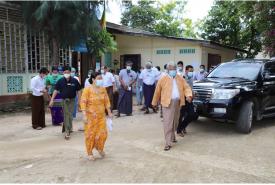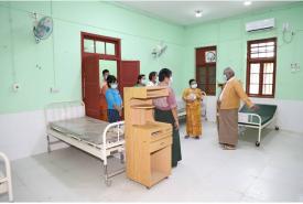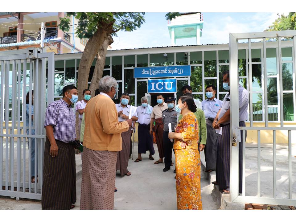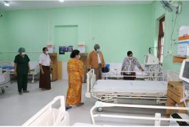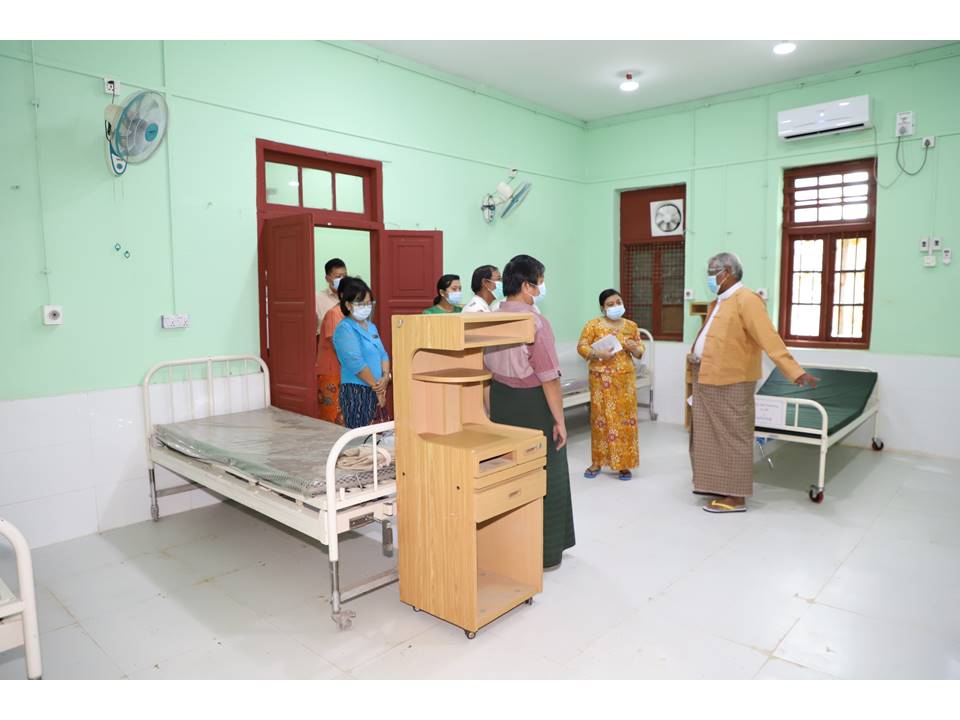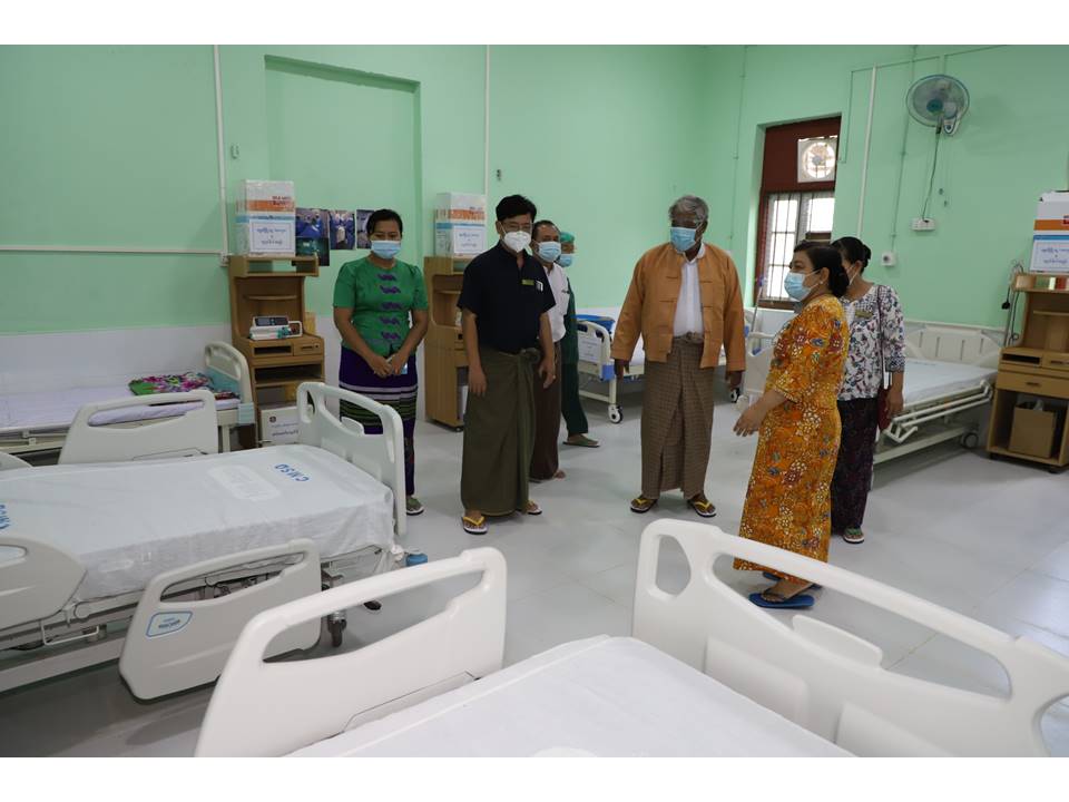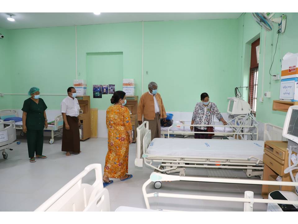 ထိုသို့စစ်ဆေးရာတွင် ဝန်ကြီးချုပ် ဒေါက်တာမြင့်နိုင် နှင့်အဖွဲ့သည် ရွှေဘိုမြို့ ခုတင်(၂၀၀)ဆံ့ ပြည်သူ့ဆေးရုံကြီးအတွင်းရှိ သီးသန့်လူနာဆောင် အမှတ်(၂)တွင် COVID-19 ရောဂါကာကွယ်ထိန်းချုပ်ကုသရေးအတွက် ပြည်သူများ၏ စုပေါင်း ထည့်ဝင်လှူဒါန်းငွေ ၈၈၂၁၄၅၀ဝ ကျပ်ဖြင့် အသက်ရှူစက် (၂)လုံး၊ လူနာကုတင် (၁၄)လုံးနှင့် အောက်ဆီဂျင် ဖြည့်စက်များအား (ဒုတိယ)အကြိမ် ထပ်မံဝယ်ယူပြင်ဆင် ဆောင်ရွက်ထားရှိမှု အခြေအနေအား ကြည့်ရှုစစ်ဆေးခဲ့သည်။