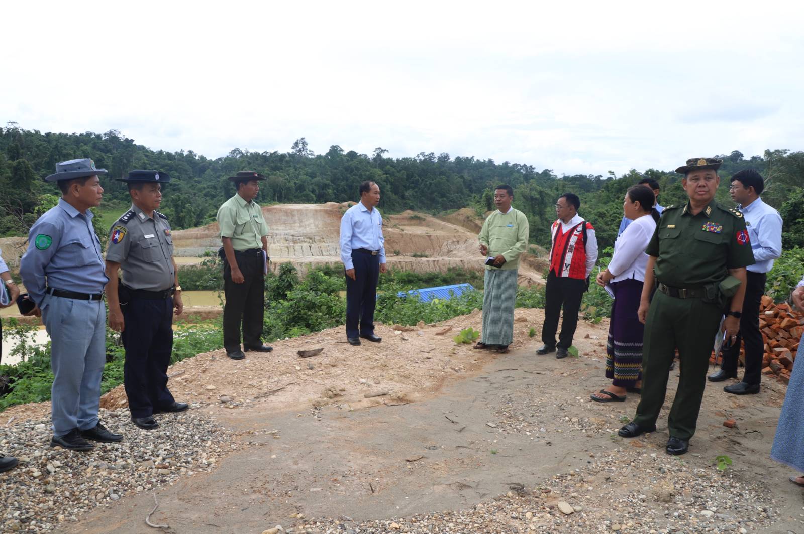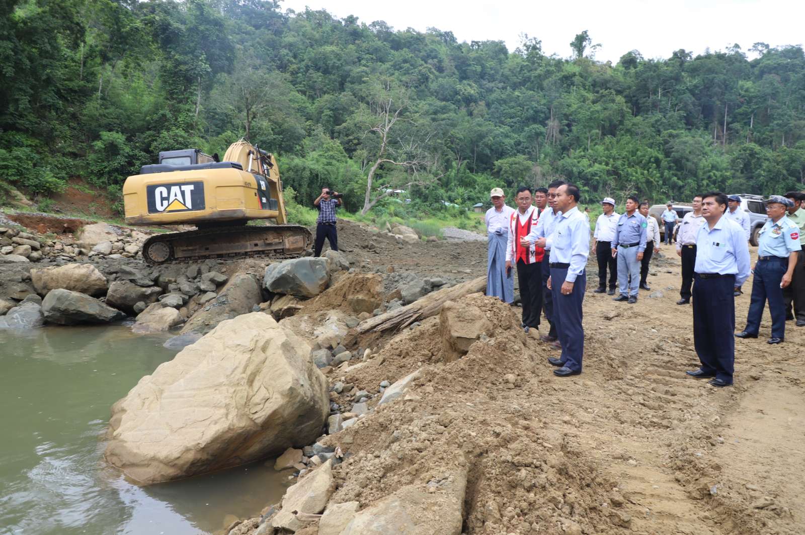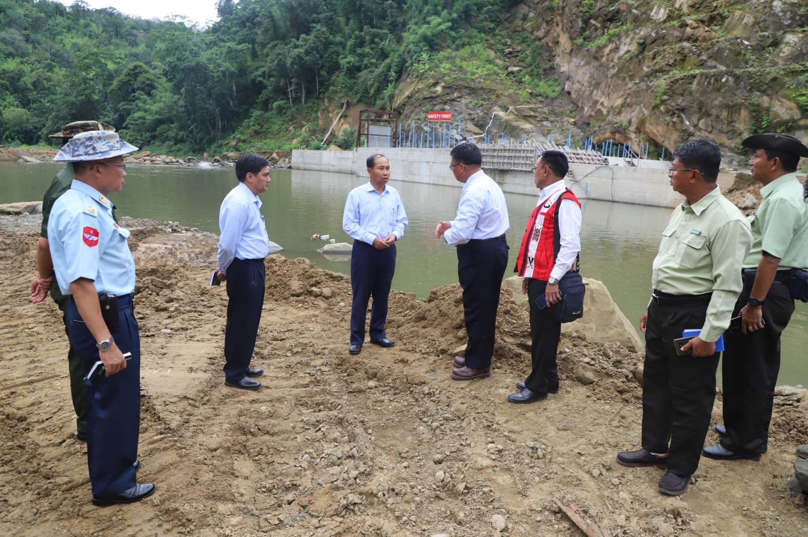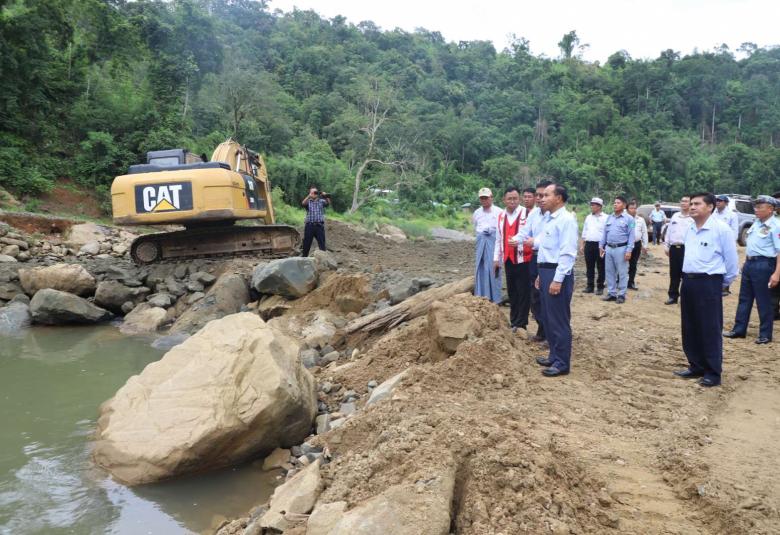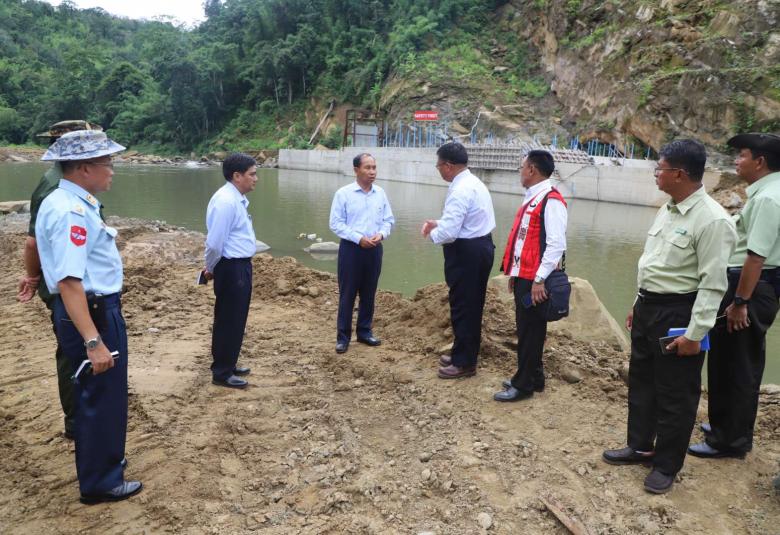 ဆက်လက်၍ တိုင်းဒေသကြီး ဝန်ကြီးချုပ်နှင့် တာဝန်ရှိသူများက နမ့်ပင အသေးစားရေအားလျှပ်စစ်စီမံကိန်း တည်ဆောက်ရေးလုပ်ငန်း ဆောင်ရွက်နေမှုများအား လိုက်လံကြည့်ရှုစစ်ဆေးခဲ့ကြသည်။