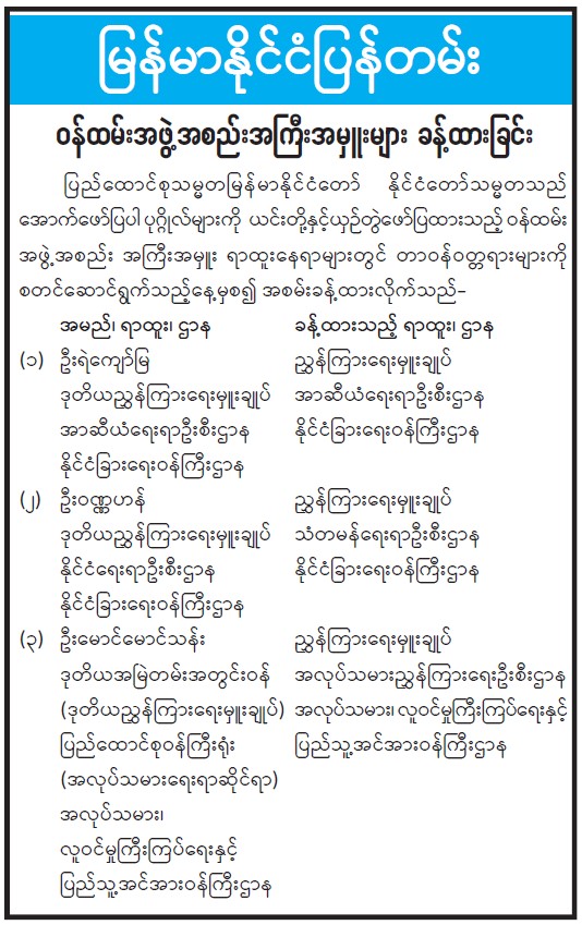 ဝန်ထမ်းအဖွဲ့အစည်း အကြီးအမှူးများ ခန့်ထားခြင်း