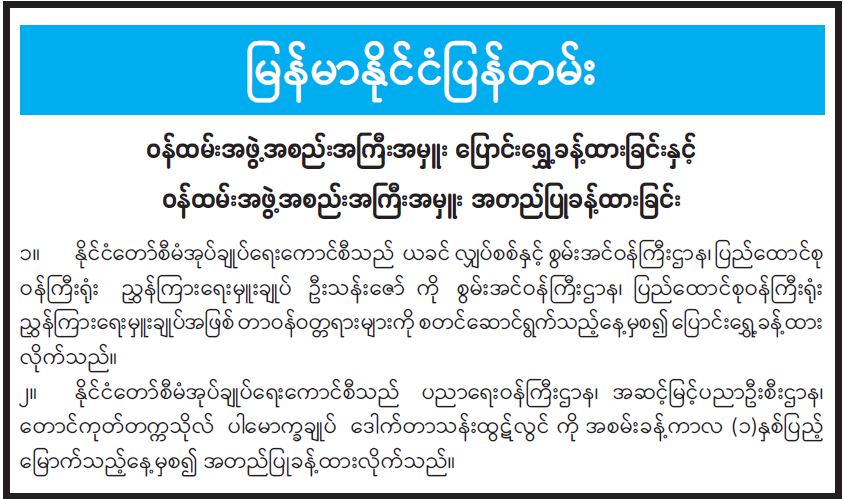၁။ နိုင်ငံတော်စီမံအုပ်ချုပ်ရေးကောင်စီသည် ယခင် လျှပ်စစ်နှင့် စွမ်းအင်ဝန်ကြီးဌာန၊ ပြည်ထောင်စု ဝန်ကြီးရုံး ညွှန်ကြားရေးမှူးချုပ် ဦးသန်းဇော် ကို စွမ်းအင်ဝန်ကြီးဌာန၊ ပြည်ထောင်စုဝန်ကြီးရုံး ညွှန်ကြားရေးမှူးချုပ်အဖြစ် တာဝန်ဝတ္တရားများကို စတင်ဆောင်ရွက်သည့်နေ့မှစ၍ ပြောင်းရွှေ့ခန့်ထား လိုက်သည်။