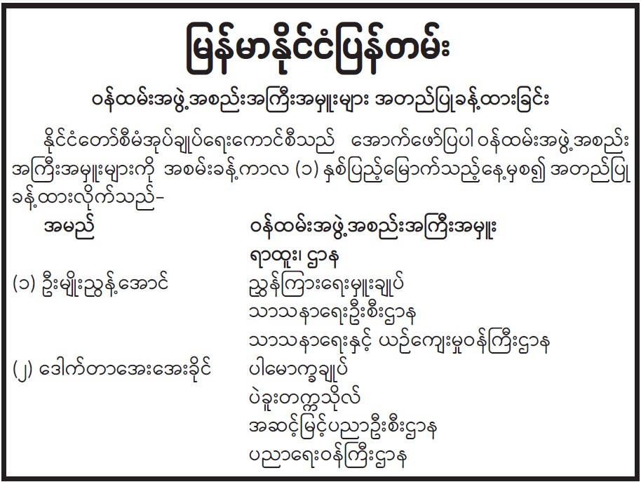 ဝန်ထမ်းအဖွဲ့အစည်းအကြီးအမှူးများ အတည်ပြုခန့်ထား