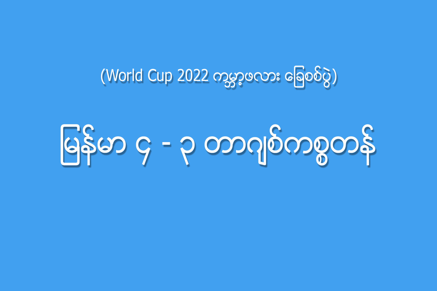 World Cup 2022 ကမ္ဘာ့ဖလားခြေစစ်ပွဲအဖြစ် မြန်မာအသင်းနှင့် တာဂျစ်ကစ္စတန်အသင်းတို့ ယနေ့ ညနေ ၅ နာရီတွင် မန္တလေးမြို့ မန္တလာသီရိအားကစားကွင်း၌ ယှဉ်ပြိုင်ကစားခဲ့ရာ မြန်မာအသင်းက လေးဂိုး - သုံးဂိုးဖြင့် အနိုင်ရရှိခဲ့သည်။