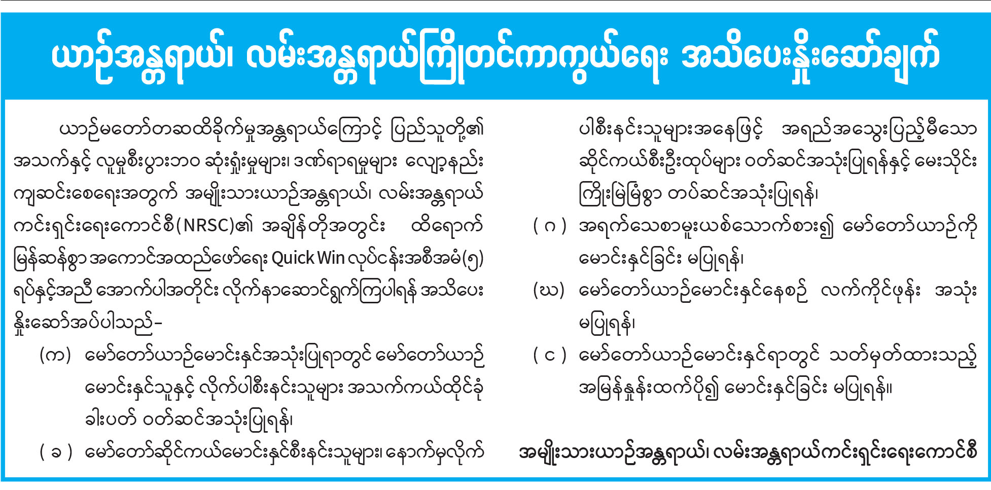 ယာဉ်အန္တရာယ်၊ လမ်းအန္တရာယ်ကြိုတင်ကာကွယ်ရေး အသိပေးနှိုးဆော်ချက်