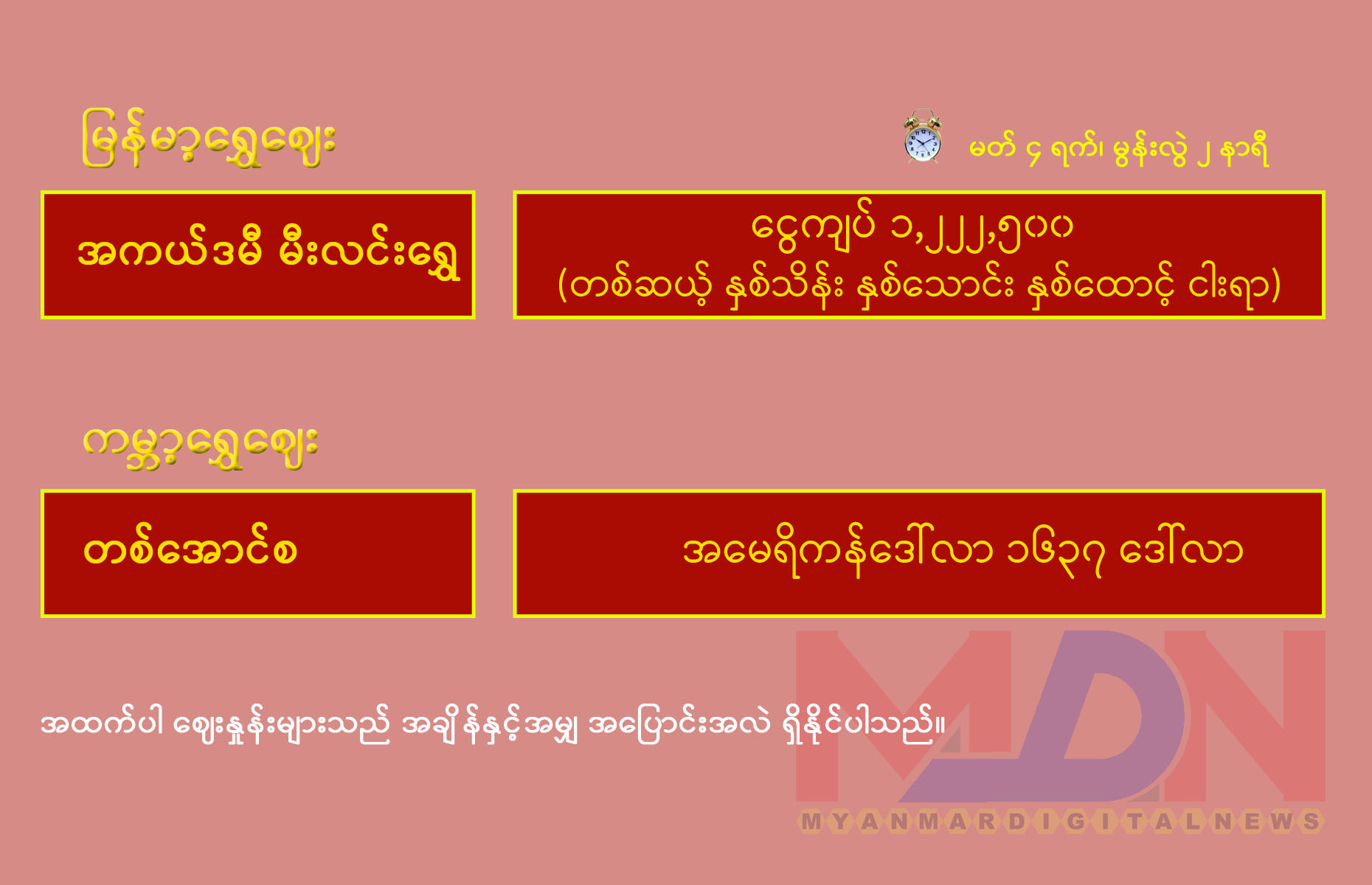 ယနေ့ မွန်းလွဲ ၂ နာရီ ရွှေဈေး