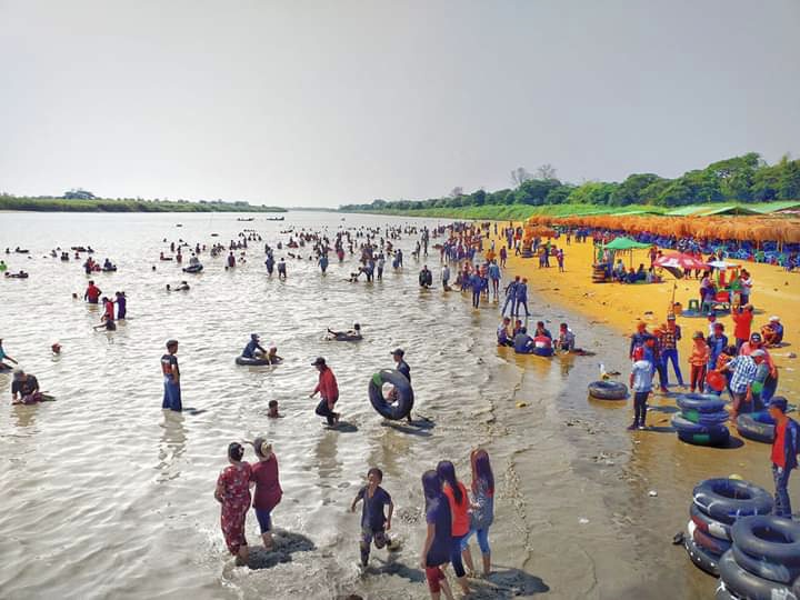 ဓနုဖြူမြို့၏ ဥမ္မာဒန္တီကမ်းခြေတွင် ယနေ့ သင်္ကြန်အကျနေ့၌ လာရောက်လည်ပတ်သူများဖြင့် အထူးစည်ကားများပြားလျက်ရှိကြောင်း သိရသည်။