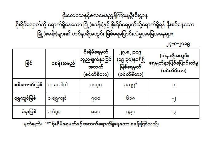 ယနေ့ည ၇ နာရီခွဲ တိုင်းတာရရှိသော မြစ်ရေအခြေအနေ