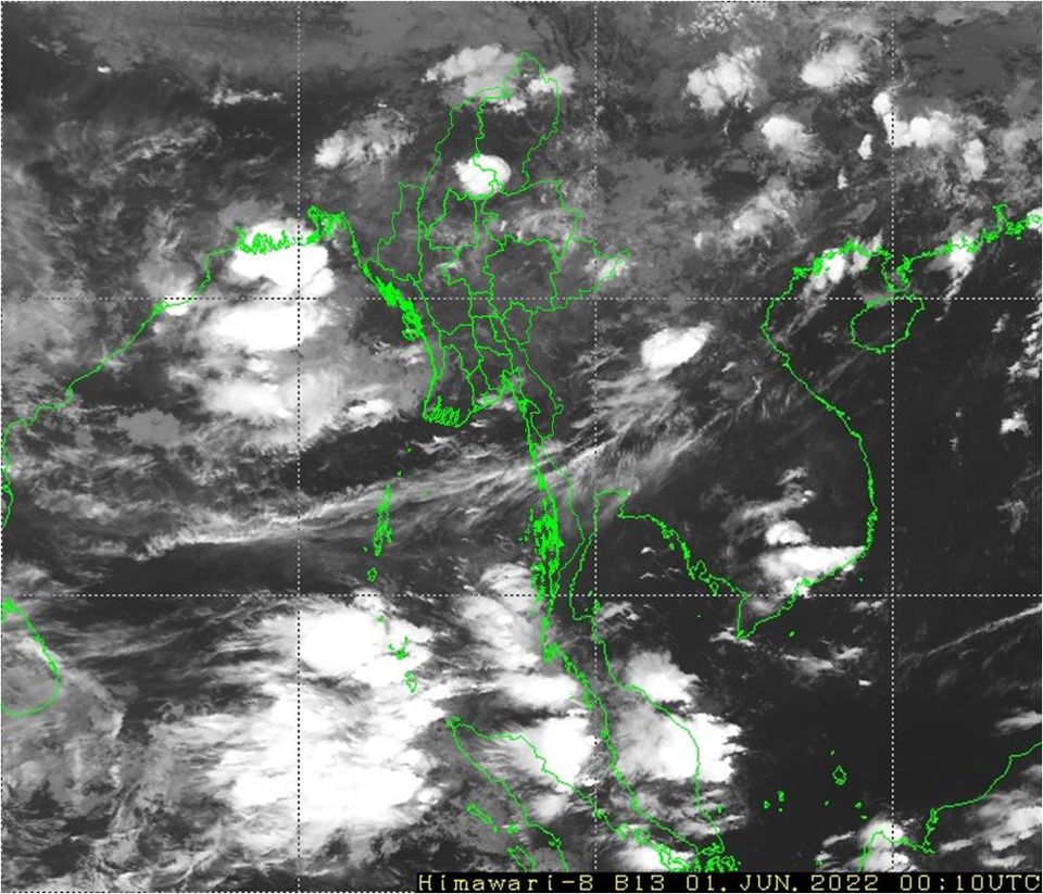 ယနေ့ညနေအထိခန့်မှန်းချက်မှာ နေပြည်တော်၊ စစ်ကိုင်းတိုင်းဒေသကြီးအောက်ပိုင်း၊ မန္တလေးတိုင်း ဒေသကြီးနှင့် မကွေးတိုင်းဒေသကြီးတို့တွင် နေရာကျဲကျဲ၊ စစ်ကိုင်းတိုင်းဒေသကြီးအထက်ပိုင်း၊ ပဲခူးတိုင်းဒေသကြီး၊ ကချင်ပြည်နယ်၊ ရှမ်းပြည်နယ်(တောင်ပိုင်း)၊ ကယားပြည်နယ်နှင့် ကရင်ပြည်နယ် တို့တွင် နေရာစိပ်စိပ်နှင့် ကျန်တိုင်းဒေသကြီးနှင့် ပြည်နယ်တို့တွင် နေရာအနှံ့အပြားမိုးထစ်ချုန်းရွာပြီး မွန်ပြည်နယ်တွင် နေရာကွက်၍ မိုးကြီးနိုင်သည်။ ရွာရန်ရာနှုန်းပြည့် ဖြစ်သည်။