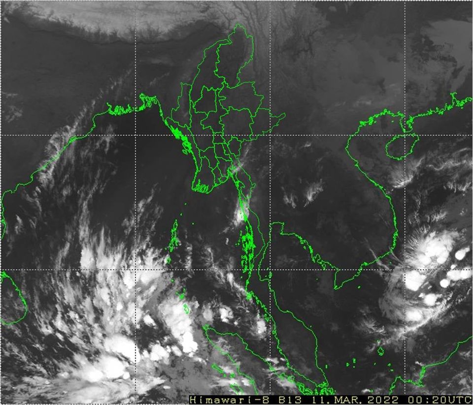 ဘင်္ဂလားပင်လယ်အော်အခြေအနေမှာ ဘင်္ဂလားပင်လယ်အော်မြောက်ပိုင်းတွင် တိမ်အနည်းငယ် ဖြစ်ထွန်းနေပြီး ကပ္ပလီပင်လယ်ပြင်နှင့် ကျန်ဘင်္ဂလားပင်လယ်အော်တို့တွင် တိမ်အသင့်အတင့်မှ တိမ်ထူထပ်နေသည်။