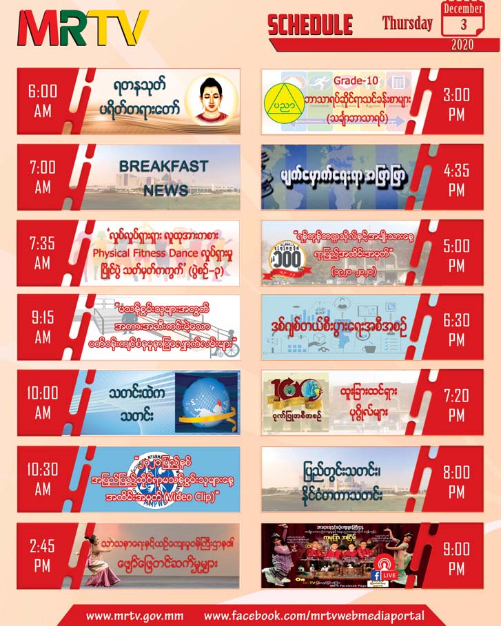 ယနေ့ထုတ်လွှင့်ပြသမည့် MRTV အချိန်စာရင်း