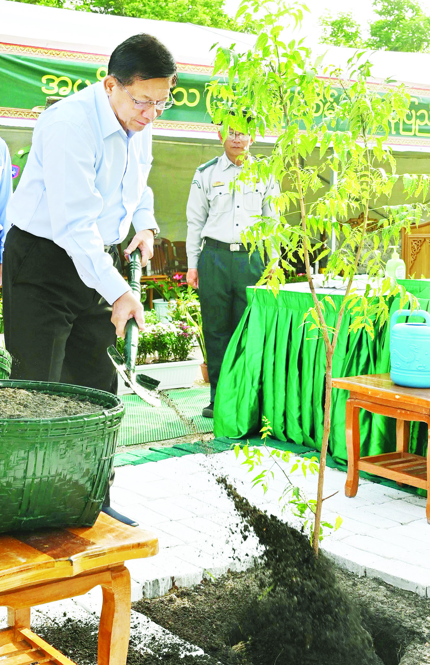 ယနေ့တွင် အပူပိုင်းဒေသ (၁၃) ခရိုင်၌ ပျိုးပင်ပေါင်း ၃၄၉၅၀ အား စိုက်ပျိုးသွားမည်ဖြစ်ကြောင်း၊ ယခု နေရာများသည် ယခင်တည်းက စိုက်ပျိုးခဲ့သည့်နေရာများဖြစ်ကြောင်း၊ သို့သော်ရှင်သန်မှုများ အားနည်းခြင်း၊ ဒေသလိုအပ်ချက်အရ သစ်ပင်များ တရားမဝင် ခုတ်ထွင်ခြင်းများကြောင့် ထိုက်သင့်သလောက် အကျိုးမရရှိခဲ့ကြောင်း၊ ယခုကဲ့သို့ သစ်ပင်စိုက်ပျိုးပွဲများ ကျင်းပခြင်းကြောင့် အချိန်၊ လူအင်အားနှင့် ငွေကြေးကုန်ကျမှုများရှိကြောင်း၊ ထို့ကြောင့် မိမိတို့ စိုက်ပျိုးသည့်အပင်များ “တစ်ပင်စိုက်၊ တစ်ပင်ရှင်” ဖြစ်အောင် စနစ်တကျ စိုက်ပျိုးထိန်းသိမ်းသွားကြရန်လိုကြောင်း၊ မိမိတို့စိုက်ပျိုးသည့် အပင်များအားလုံးရှင်သန်စေရန်အတွက် တာဝန်ရှိသူများက စနစ်တကျ ဆက်လက်ထိန်းသိမ်းခြင်းလုပ်ငန်းများကို စေတနာထား၍ ဆောင်ရွက်သွားကြရန်လိုကြောင်း။