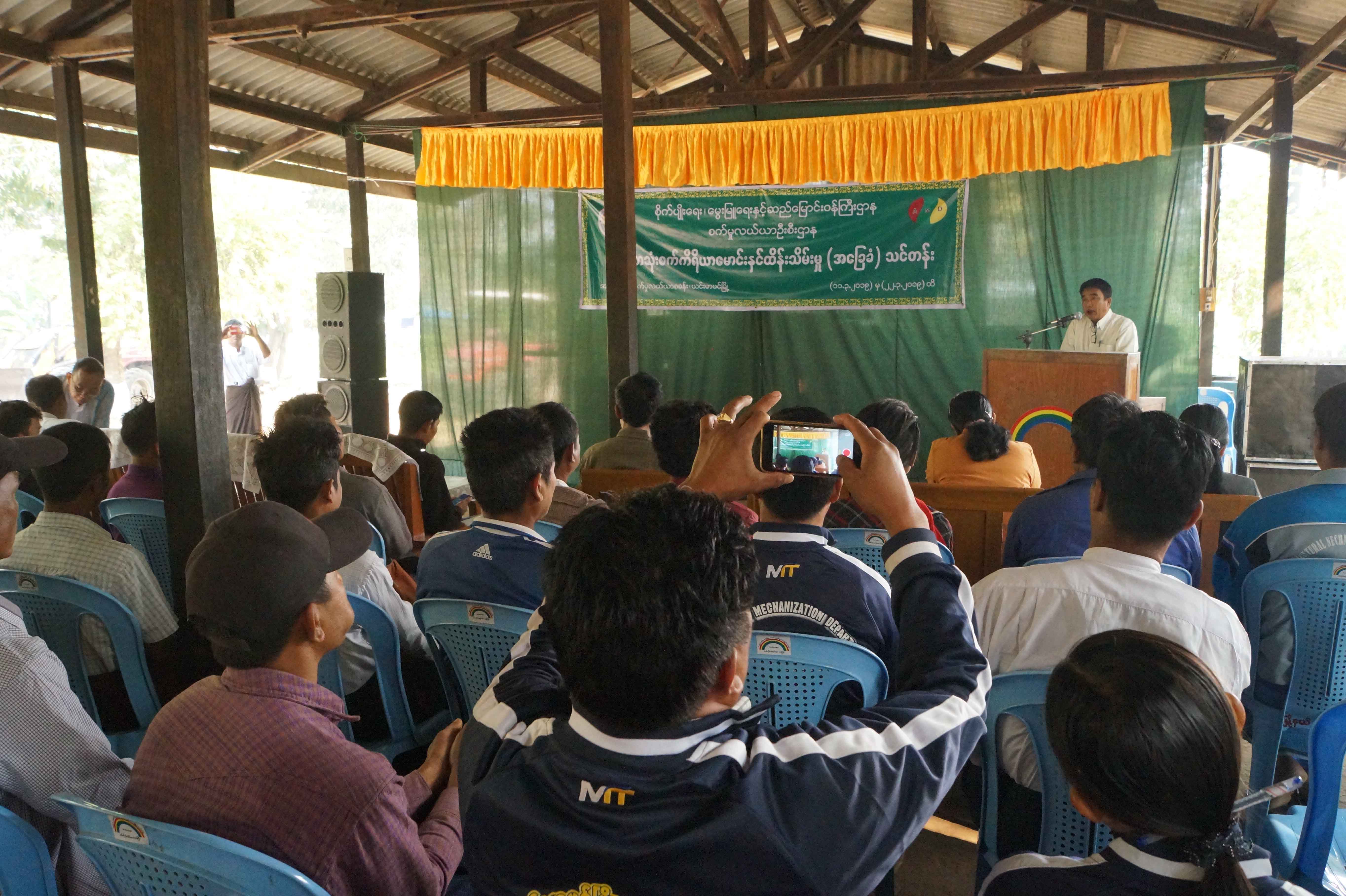 အခမ်းအနားတွင် ခရိုင်စီမံခန့်ခွဲမှုကော်မတီအဖွဲ့ဝင် ခရိုင်စီမံကိန်းဦးစီးဌာန ခရိုင်ဦးစီးမှူး ဒေါ်နှင်းနှင်းလှိုင်က အဖွင့်အမှာစကားပြောကြာပြီး အမှတ်(၄၁) စက်မှုလယ်ယာစခန်းမှ ဦးစီးအရာရှိ ဦးမင်းနိုင်က သင်တန်းဖွင့်လှစ်ရခြင်းနှင့် ပတ်သက်၍ တောင်သူများအနေဖြင့် လက်မှုလယ်ယာကနေ စက်မှုလယ်ယာသို့ တစ်ဖြည်းဖြည်း ပြောင်းလဲလာခြင်းနှင့်အညီ လယ်ယာသုံး စက်ကိရိယာများကို လက်တွေ့အသုံးပြု လုပ်ကိုင်ရာတွင် စနစ်တကျမောင်းနှင် အသုံးပြုတတ်စေရန်နှင့် စက်ပစ္စည်းများကိုလည်း ပြုပြင်ထိန်းသိမ်း တတ်စေရန်တို့ကို ရည်ရွယ်၍ ယခုလို စက်ကိရိယာ မောင်းနှင်ထိန်းသိမ်းမှုသင်တန်း ဖွင့်လှစ်ရခြင်းဖြစ်ကြောင်း ရှင်းလင်းပြောကြားသည်။