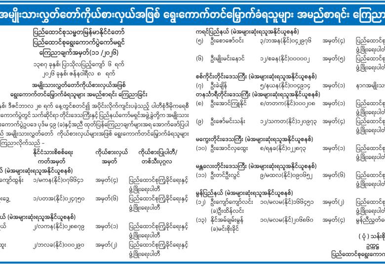 Home Jan 9,2026 |10:21 | ပြည်တွင်း အမျိုးသားလွှတ်တော်ကိုယ်စားလှယ်အဖြစ် ရွေးကောက်တင်မြှောက်ခံရသူများ အမည်စာရင်း ကြေညာ Jan 9,2026 |10:19 | ပြည်တွင်း ပညာတတ်များပေါများကြွယ်ဝမှသာ ဒေသတွင်းလူမှုစီးပွားဘဝများ ပိုမိုဖွံ့ဖြိုးတိုးတက်လာမည် ပန်းတောင်းမြို့သည် စက်မှုလုပ်ငန်းများဖွံ့ဖြိုးတိုးတက်ရန် အခြေခံကောင်းများရှိပြီးဖြစ် ပညာတတ် လူသားအရင်းအမြစ်များ ပိုမိုတိုးတက်လာပြီး ဒေသဖွံ့ဖြိုးအောင် ကြိုးပမ်း ဆောင်ရွက် Jan 9,2026 |10:19 | ပြည်တွင်း ၂၀၂၅ ခုနှစ် ပါတီစုံဒီမိုကရေစီအထွေထွေရွေးကောက်ပွဲ အမျိုးသားလွှတ်တော်ကိုယ်စားလှယ်လောင်းတစ်ဦးချင်း၏ ဆန္ဒမဲရရှိမှုအခြေအနေ Jan 9,2026 |10:05 | ပြည်တွင်း နိုင်ငံတော်၏ လယ်ယာစိုက်ပျိုးရေးကဏ္ဍ တိုးတက်စေရေးအတွက် လိုအပ်သည့် လယ်ထွန်စက်များနှင့် စက်ကိရိယာများ ပိုမိုတိုးတက်ထုတ်လုပ်နိုင်ရေး ဆောင်ရွက် Jan 8,2026 |11:18 | အားကစား နော်တင်ဟမ်က ဝက်စ်ဟမ်းကို အနိုင်ယူပြီး လေးပွဲဆက်ရှုံးနိမ့်မှု အဆုံးသတ် Jan 8,2026 |10:54 | ယဉ်ကျေးမှုနှင့် ခရီးသွား သီရိလင်္ကာနိုင်ငံသို့ နိုင်ငံခြားခရီးသွားဧည့်သည် စံချိန်တင်ဝင်ရောက် Jan 8,2026 |10:50 | နိုင်ငံတကာ ဂျပန်နိုင်ငံက H3 ဒုံးပျံလွှတ်တင်မည့်ရက် ရွှေ့ဆိုင်း Jan 8,2026 |10:44 | နည်းပညာ အေအိုင်နှင့်လူပုံစံစက်ရုပ်များ စီအီးအက်စ် ပြပွဲတွင် ပြသထား Jan 8,2026 |10:36 | ယဉ်ကျေးမှုနှင့် ခရီးသွား ပင်လယ်ကမ်းခြေအပန်းဖြေစခန်းများ၌ ပြည်တွင်း၊ ပြည်ပခရီးသွား ၂၂၀၀၀ ကျော် လာရောက်အပန်းဖြေ Jan 8,2026 |10:22 | ပြည်တွင်း ၂၀၂၅ ခုနှစ် ပါတီစုံဒီမိုကရေစီအထွေထွေရွေးကောက်ပွဲ (အပိုင်း ၁) တိုင်းဒေသကြီးလွှတ်တော် သို့မဟုတ် ပြည်နယ်လွှတ်တော် ကိုယ်စားလှယ်လောင်းတစ်ဦးချင်း ဆန္ဒမဲရရှိမှုအခြေအနေ Jan 7,2026 |02:17 | အားကစား နိုင်ဂျီးရီးယားက မိုဇမ်ဘစ်ကို ဂိုးပြတ်နိုင်ပြီး အာဖရိကနိုင်ငံများဖလား ကွာတားဖိုင်နယ်တက် Jan 7,2026 |11:13 | အားကစား အီဂျစ်အသင်း အာဖရိကနိုင်ငံများဖလားပြိုင်ပွဲ ကွာတားဖိုင်နယ်တက်လှမ်း Jan 7,2026 |10:40 | ပြည်တွင်း ၂၀၂၅ ခုနှစ် ပါတီစုံဒီမိုကရေစီအထွေထွေရွေးကောက်ပွဲ အပိုင်း(၁) တိုင်းဒေသကြီးလွှတ်တော် သို့မဟုတ် ပြည်နယ်လွှတ်တော် ကိုယ်စားလှယ်လောင်းတစ်ဦးချင်း ဆန္ဒမဲရရှိမှုအခြေအနေ Jan 7,2026 |10:35 | ပြည်တွင်း တိုင်းဒေသကြီးလွှတ်တော် သို့မဟုတ် ပြည်နယ်လွှတ်တော်ကိုယ်စားလှယ်အဖြစ် ရွေးကောက်တင်မြှောက်ခံရသူများအမည်စာရင်းကြေညာ Jan 7,2026 |09:48 | ပြည်တွင်း နိုင်ငံတော်လုံခြုံရေးနှင့် အေးချမ်းသာယာရေးကော်မရှင် ဥက္ကဋ္ဌ ဗိုလ်ချုပ်မှူးကြီး မင်းအောင်လှိုင်ထံ အာဆီယံဥက္ကဋ္ဌ၏ မြန်မာနိုင်ငံဆိုင်ရာ အထူးကိုယ်စားလှယ် ဖိလစ်ပိုင်နိုင်ငံခြားရေးဝန်ကြီး ဦးဆောင်သည့် ကိုယ်စားလှယ်အဖွဲ့ လာရောက်ဂါရဝပြုတွေ့ဆုံ ၂၀၂၅ ခုနှစ် ပါတီစုံဒီမိုကရေစီ အထွေထွေရွေးကောက်ပွဲ ကျင်းပရန် 00
