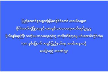 Home Jan 10,2026 |10:50 | ပြည်တွင်း နိုင်ငံတည်ငြိမ်အေးချမ်းပြီး တရားဥပဒေစိုးမိုးမှုရှိစေရေး မိမိတို့အနေဖြင့် ဒီမိုကရေစီနည်းလမ်းဖြင့် ဆောင်ရွက်လျက်ရှိ တည်ငြိမ်အေးချမ်းပြီး တရားဥပဒေစိုးမိုးမှုရှိမှသာ ပြည်သူများ အလုပ်အကိုင်များ အဆင်ပြေချောမွေ့ပြီး နိုင်ငံဖွံ့ဖြိုးတိုးတက်လာမည် Jan 10,2026 |10:37 | ပြည်တွင်း နိုင်ငံတော်လုံခြုံရေးနှင့် အေးချမ်းသာယာရေးကော်မရှင်ဥက္ကဋ္ဌ တပ်မတော်ကာကွယ်ရေးဦးစီးချုပ် ဗိုလ်ချုပ်မှူးကြီး မင်းအောင်လှိုင် စက္ကူစက်ရုံ(သာပေါင်း)သို့ သွားရောက်ကြည့်ရှုစစ်ဆေး Jan 10,2026 |10:36 | နိုင်ငံတကာ သီရိလင်္ကာနိုင်ငံ၌ ဆိုင်ကလုန်းမုန်တိုင်းဒီဝါကြောင့် ထိခိုက်သူများအတွက် နေအိမ်ပြန်လည်တည်ဆောက်ရေးအစီအစဉ်စတင် Jan 10,2026 |10:25 | အားကစား ပီအက်စ်ဂျီအသင်း ပြင်သစ်စူပါဖလား လေးနှစ်ဆက်တိုက်ဆွတ်ခူး Jan 10,2026 |10:13 | ပြည်တွင်း စိုက်ပျိုးရေးနှင့် မွေးမြူရေးလုပ်ငန်းများ ပိုမိုတိုးတက်အောင်ဆောင်ရွက်နိုင်ရန် စိုက်ပျိုးရေးနှင့် မွေးမြူရေး အတတ်ပညာရှင် ပညာတတ်လူသားအရင်းအမြစ်များ လိုအပ်သဖြင့် ကျေးလက်ပညာရည် မြင့်မားစေရေး ဆောင်ရွက် Jan 9,2026 |05:26 | ပြည်တွင်း “လူငယ်ငြိမ်းချမ်းရေးဖိုရမ် ၂၀၂၆ ခုနှစ်” အခမ်းအနားသို့ တက်ရောက်မည့် ရန်ကုန်တိုင်းဒေသကြီး ကိုယ်စားပြုလူငယ်များက ရန်ကုန်တိုင်းဒေသကြီး ဝန်ကြီးချုပ်ထံမှ ဩဝါဒခံယူပွဲ ကျင်းပ Jan 9,2026 |02:08 | အားကစား မန်ယူက ဘန်လေကို ခြေစွမ်းအသာဖြင့် ကစားနိုင်ခဲ့သော်လည်း သရေရလဒ်ဖြင့် ကျေနပ်ခဲ့ရ Jan 9,2026 |12:55 | နိုင်ငံတကာ နိုင်ငံတကာအဖွဲ့အစည်း ၆၆ ခုမှ အမေရိကန်နုတ်ထွက်ရန် ဒေါ်နယ်ထရမ့် လက်မှတ်ရေးထိုး Jan 9,2026 |11:34 | နိုင်ငံတကာ သြစတြေးလျနိုင်ငံတစ်ဝန်း စံချိန်တင်အပူလှိုင်းဒဏ်ကြောင့် တောမီးများလောင်ကျွမ်းလျက်ရှိ Jan 9,2026 |11:30 | နိုင်ငံတကာ ၂၀၂၆ ဖီဖာကမ္ဘာ့ဖလားပြိုင်ပွဲတွင် တရုတ်အေအိုင်နည်းပညာများကို အသုံးပြုသွားမည် Jan 9,2026 |11:14 | ပြည်တွင်း ပြည်ထောင်စုဝန်ကြီး ဒေါက်တာချောချောစိန် ကာယပညာနှင့်အားကစား အခြေခံနည်းပြသင်တန်း အမှတ်စဉ် (၂၃) ဖွင့်ပွဲတက်ရောက် Jan 9,2026 |11:03 | အားကစား စပိန်စူပါဖလား ၁၅ ကြိမ်ဆွတ်ခူးထားတဲ့ ဘာစီလိုနာအသင်း ဘီဘာအိုအသင်းကို အနိုင်ရပြီး နောက်ဆုံး ဗိုလ်လုပွဲတက်လှမ်း Jan 9,2026 |10:21 | ပြည်တွင်း အမျိုးသားလွှတ်တော်ကိုယ်စားလှယ်အဖြစ် ရွေးကောက်တင်မြှောက်ခံရသူများ အမည်စာရင်း ကြေညာ Jan 9,2026 |10:19 | ပြည်တွင်း ပညာတတ်များပေါများကြွယ်ဝမှသာ ဒေသတွင်းလူမှုစီးပွားဘဝများ ပိုမိုဖွံ့ဖြိုးတိုးတက်လာမည် ပန်းတောင်းမြို့သည် စက်မှုလုပ်ငန်းများဖွံ့ဖြိုးတိုးတက်ရန် အခြေခံကောင်းများရှိပြီးဖြစ် ပညာတတ် လူသားအရင်းအမြစ်များ ပိုမိုတိုးတက်လာပြီး ဒေသဖွံ့ဖြိုးအောင် ကြိုးပမ်း ဆောင်ရွက် Jan 9,2026 |10:19 | ပြည်တွင်း ၂၀၂၅ ခုနှစ် ပါတီစုံဒီမို